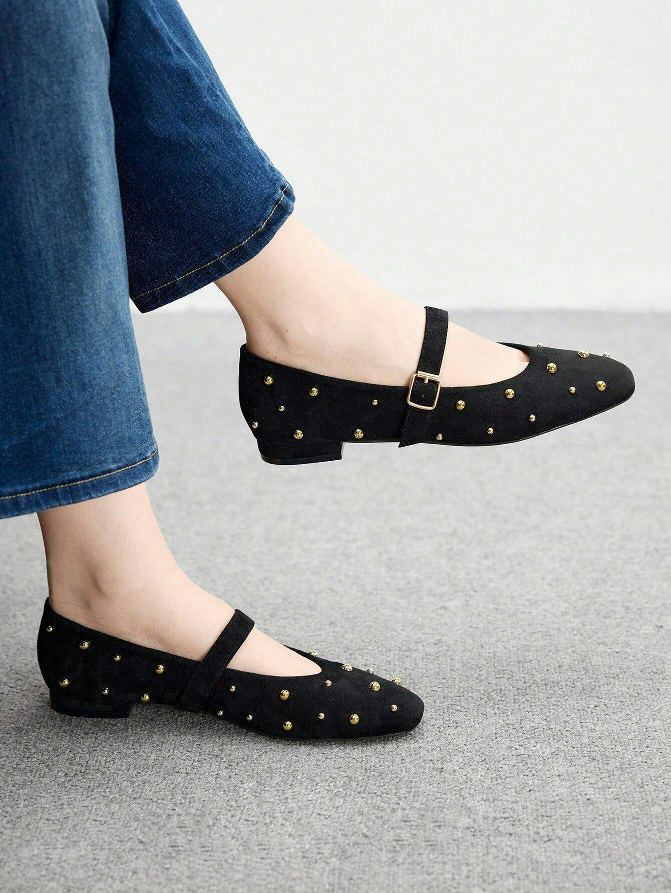 Step into timeless style with the CHARM Black Ballet Flat, designed for women who value both elegance and comfort. Featuring sparkling rhinestone handwork, a chic square toe shape, and double cushioning for all-day support, this ballet flat is perfect for every occasion.