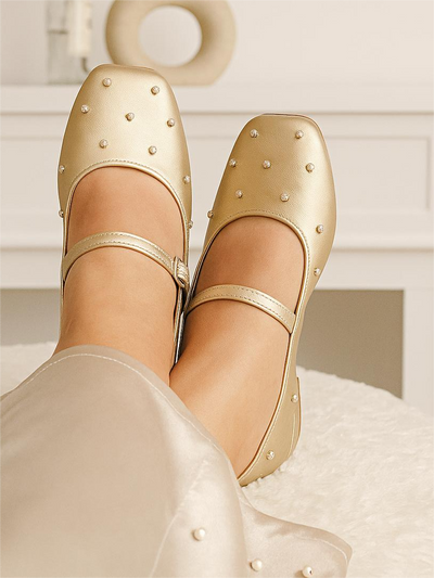 Step into luxury with our Golden Glow Gold Ballet Flats, designed for women who want elegance and comfort in one stylish package. Featuring sparkling rhinestone handwork, a trendy square toe shape, and double cushioning for all-day comfort, these flats bring a radiant glow to every outfit.