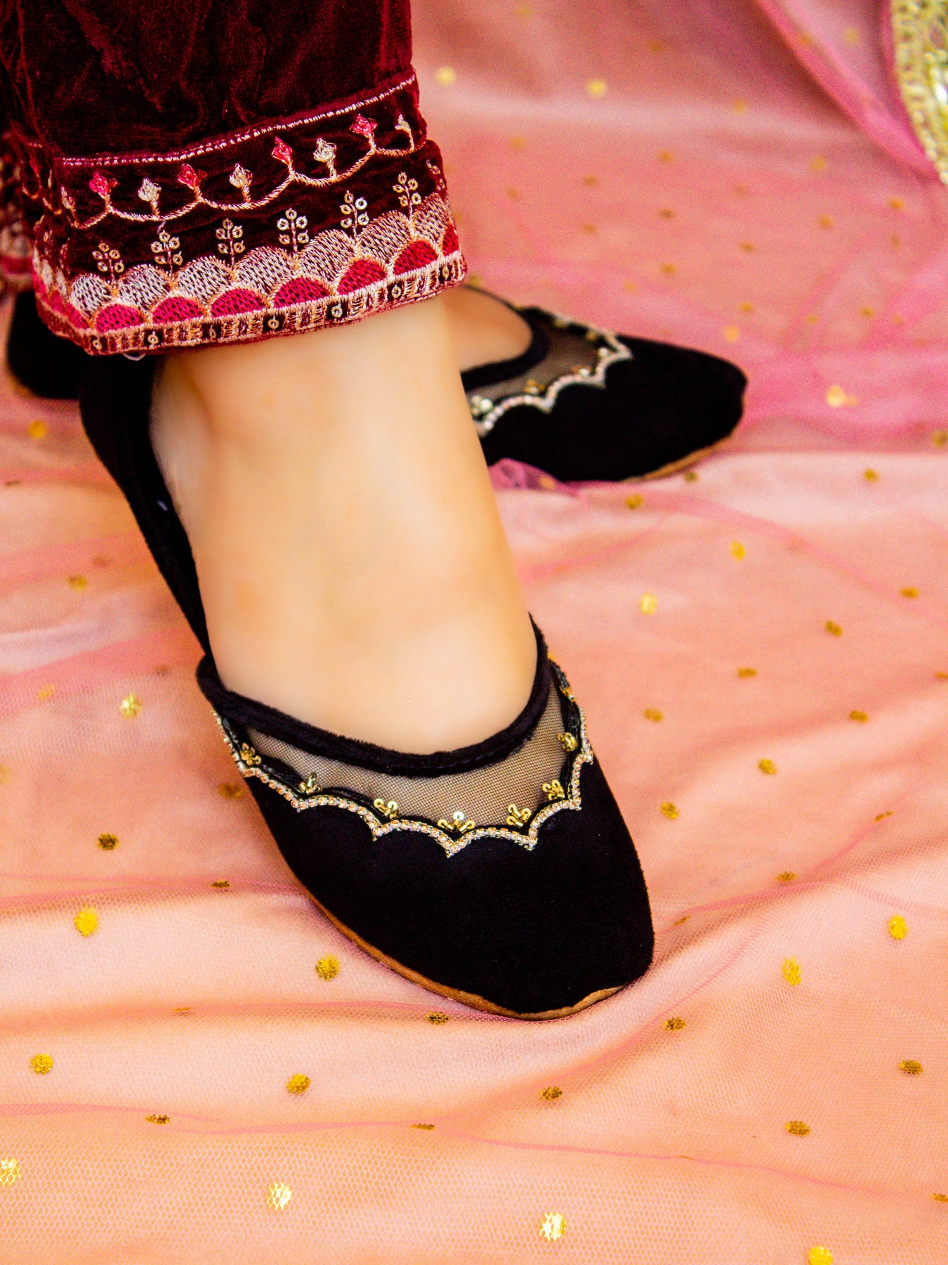 Perfect for Eid, weddings, summer events, or daytime glam, these handcrafted Khussas blend festive charm with all-day comfort.