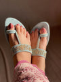 Grace meets serenity in Ulfat, our powder blue velvet Kolhapuri adorned with delicate light gold handwork. The soft pastel hue evokes calm elegance, while the golden embellishments add just the right touch of festive sparkle. Designed for the woman who values comfort as much as beauty, Ulfat is the perfect choice for weddings, Eid soirées, and chic everyday styling.