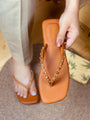 Bring the warmth of golden sunshine to your style with our mustard flip-flops, beautifully adorned with handcrafted white stone embellishments. The square-toe silhouette adds a modern, fashion-forward edge, while the double cushioned sole delivers unmatched comfort for all-day wear.
