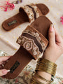 Indulge in luxury and comfort with our Sitara Festive Slider. Featuring Dabka, nakshi moti sitara and crystal detailing, this wide-shaped slider is perfect for the holiday season. Stay stylish and comfortable all day long. Order now for the ultimate blend of style and comfort